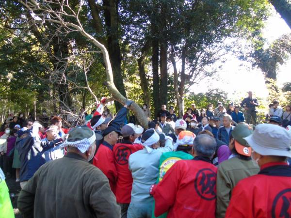 大木を絡ませ引き合い五穀豊穣祈願 高隈鉤引き祭り勇壮に