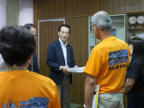 また、この日の嘆願書は、「永野町長におかれましては、内之浦地区住民の長年の願いである新たな温泉施設と宿泊施設の早期建設について、以下の事項を速やかに実行していただきますよう、強く嘆願いたします。」として、署名趣旨の3事項を列挙。