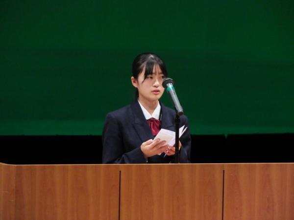 生徒代表の中村心春さんが喜びの言葉を述べた。