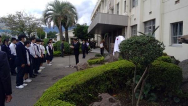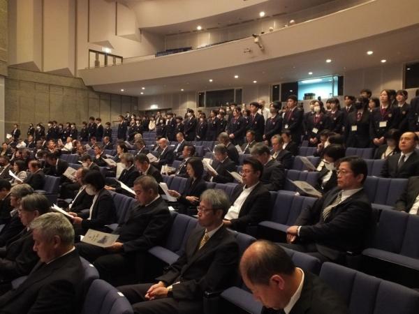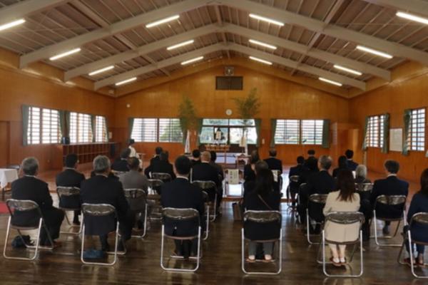 記念式典では、鎌田政司校長が式辞、同窓会長の堀内貴志実行委員長があいさつ。