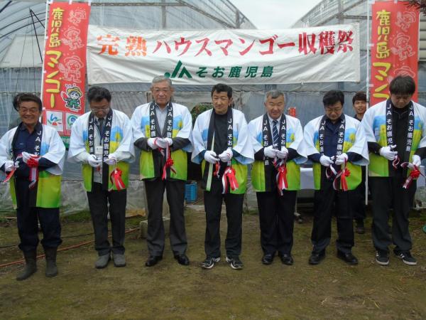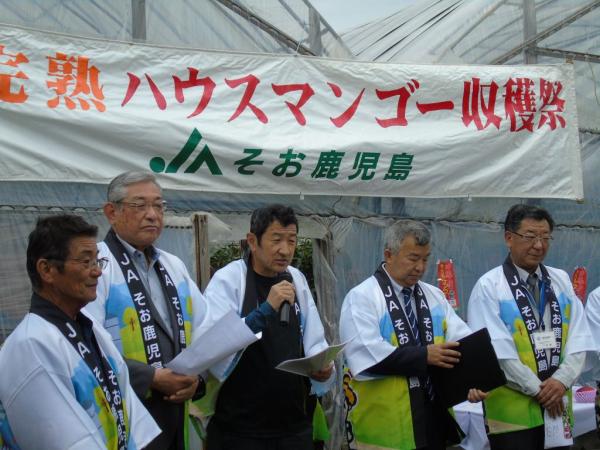 この日は、JAそお鹿児島農産部営農指導課の徳富知行課長の司会進行で、果樹部会マンゴー専門部会の近松輝久部会長と、竹内和久代表理事組合長があいさつ。