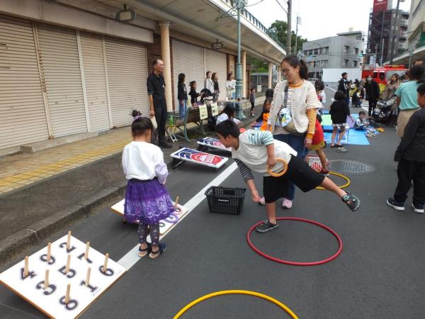 本町では、ゲームコーナー、グルメコーナー、フリーマーケット、消防車展示、カラオケなど。