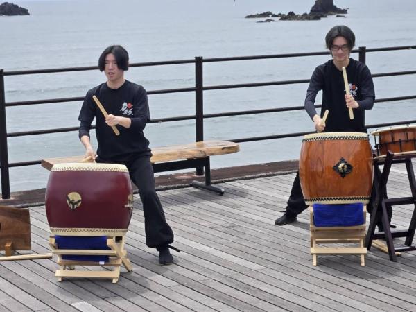 音まつりが、2026年4月11日、高須海水浴場で開催され、和太鼓や沖縄三線、フラダンス、実力派シンガーのきよふみライブもあった。