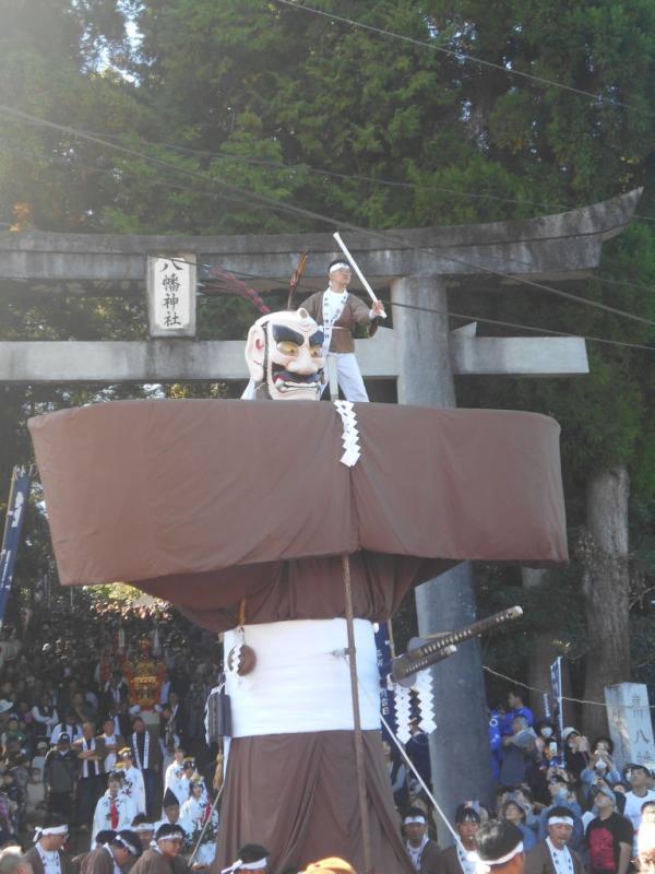 県下三大祭の一つ、岩川八幡神社の弥五郎どん祭りが、2025年11月3日、岩川八幡神社や曽於市岩川市街地で開催され、2日には前夜祭、4日はシンポジウムで記念演舞もあった。
