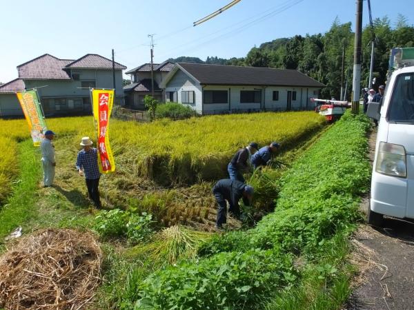 鹿屋市シルバー人材センター(八代裕二理事長)の互助会である飛躍会(松下高明会長)のお米製造販売事業実行委員会は、今回初めての試みで米作りを実施、令和7年10月14日(火)、同市西祓川町の田んぼで稲刈りを行った。