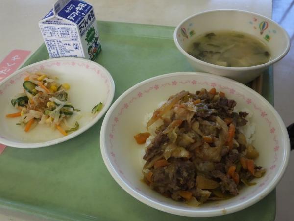 これは、垂水市へのふるさと納税による匿名寄附者から、垂水市の地元の食材である新城産の牛肉のプレゼントがあり、同市内全小中学校の学校給食約840食で新城産焼肉丼が提供されたもの。