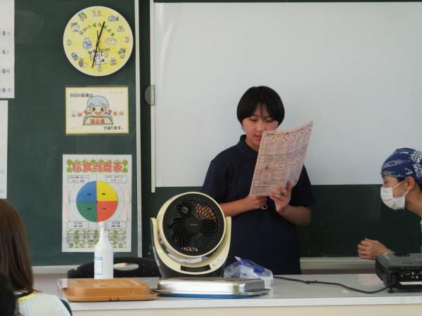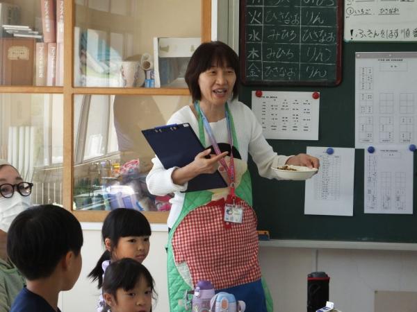 坂中律子栄養教諭が、献立における栄養の重要性、食育の普及など説明。