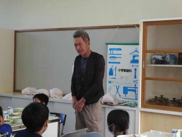 この日は、市立新城小学校(有村重輝校長)で牛肉生産者と小学生の給食交流会として、尾脇雅弥垂水市長があいさつし、6年生の一松凛さんが「焼肉丼、味噌けんちん汁、しらす干しのかみかみ和え、牛乳」の献立を説明。