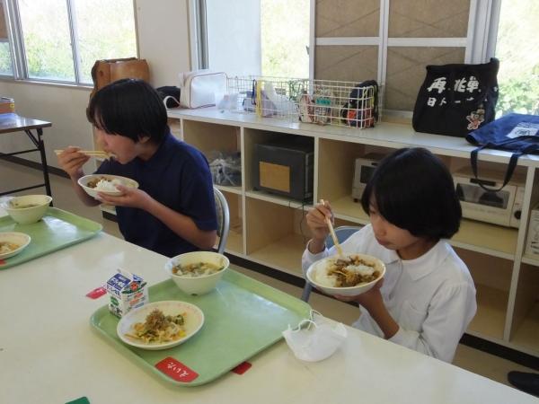 垂水市内全小中学校の学校給食で、令和7年11月7日、ふるさと納税寄附者提供による新城産焼肉丼がメニューとなり、児童らが、美味しそうに頬張っていた。
