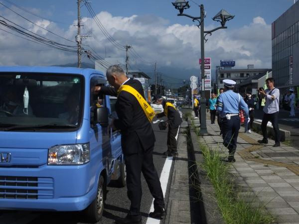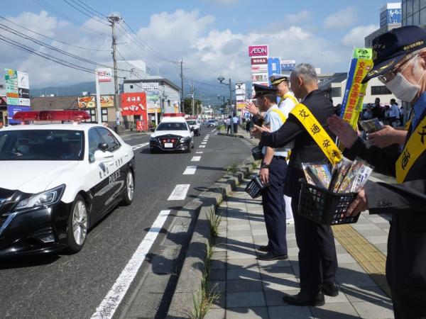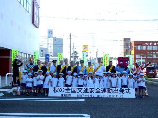 9月21日~30日までの秋の全国交通安全運動期間に先立ち、交通安全に対する市民への意識向上を図るため出発式を行ったもの。