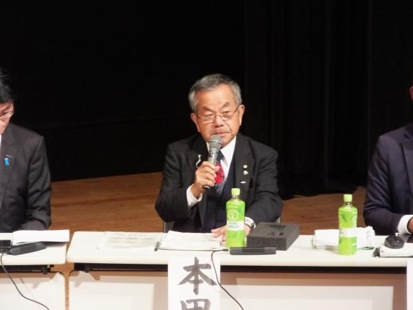 本田氏は「抽象的なものだけでなく、大手町のマックスバリュ跡地、議員定数削減、作物を作るだけでなく加工品開発、新生町の第五艦隊司令部跡を活かすなど、管間の活力を活かし連携して地域を成長させていく。」