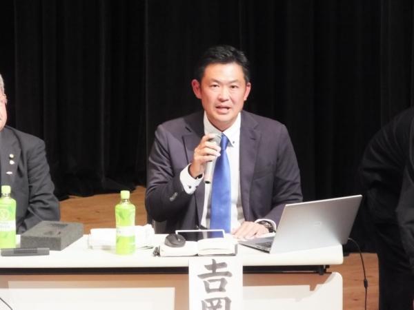 吉岡氏は、人口減少や若者流出のデータを示しながら「一次産業の地域という現状から、加工品、工業製品、第2次産業に目を向け、エネルギーや宇宙産業でのビジネスチャンスなど、具体的な地域課題解決を考えていく」など述べた。