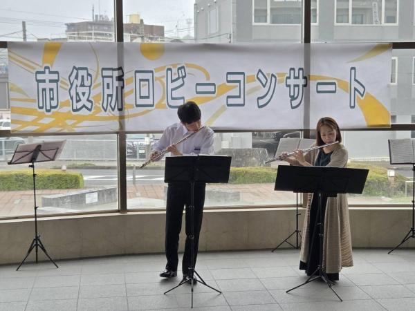 フルートアンサンブルロビーコンサートが、令和8年3月30日、鹿屋市役所1F市民ホールで開催された。