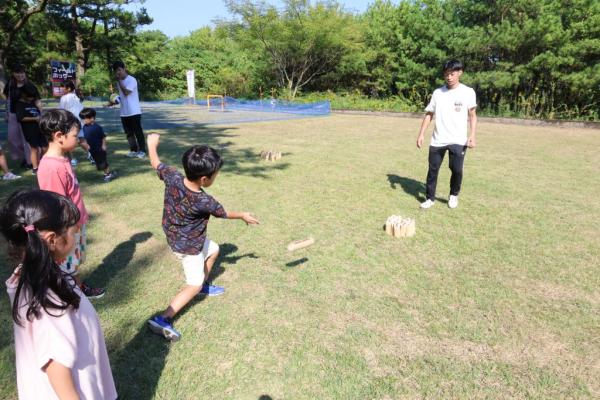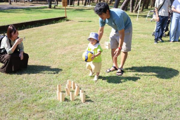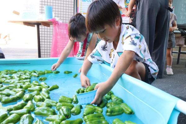 スリッパ飛ばし大会やモルック、スーパーピーマンすくい、スラックライン、ガラガラ大抽選会もあった。