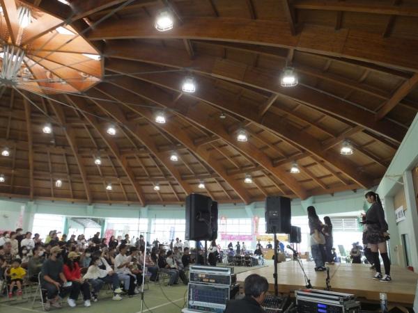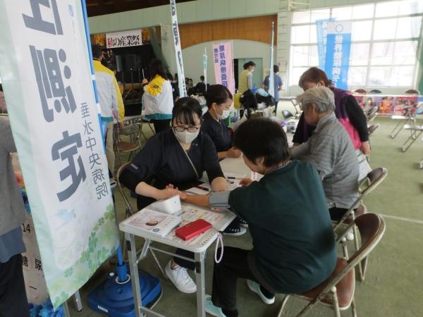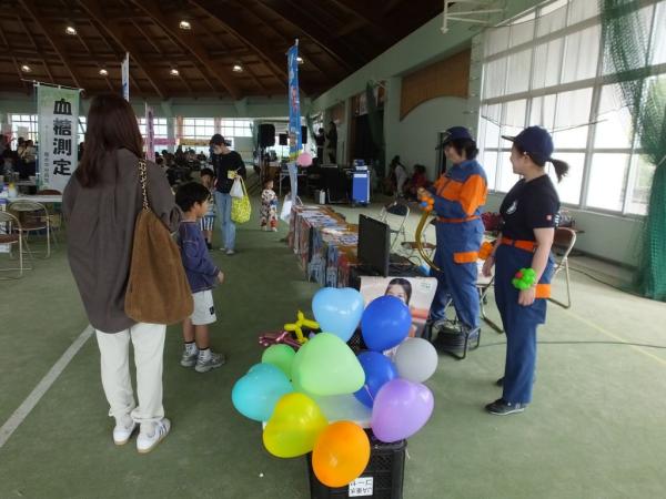 ステージでは、キッズダンスや踊りなどが披露され、会場では健康診断、フワフワドーム、子どもレスキュー体験、バルーン、市内業者の出店、牛肉・豚肉の特別販売などで賑わっていた。
