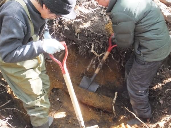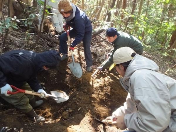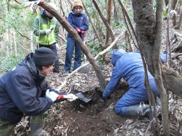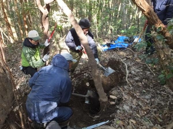 写真は、葛堀体験の様子。