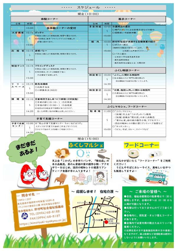 また、各種福祉事業の啓発並びに自主財源獲得の機会を創設し、地域の福祉活動の拠点となる肝付町福祉会館の開設周年記念イベントとして開催。