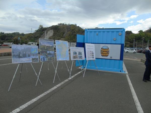 この日は、道の駅施設と公園との間に設置された同トイレの前で、国道交通省大隅河川国道事務所から垂水市への活用の仕方など、パネルを使っての説明があった。