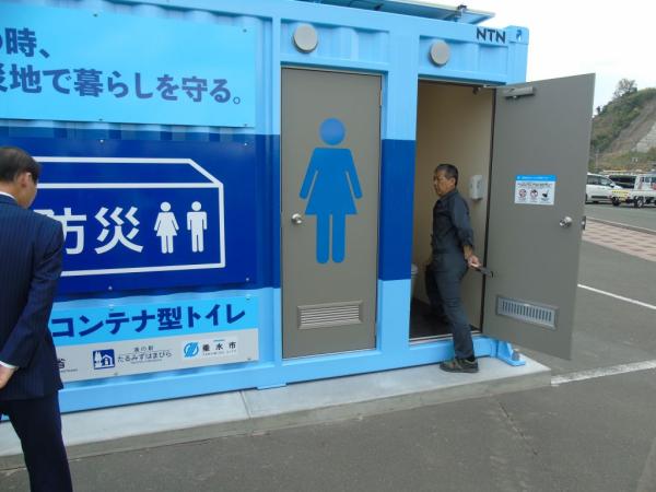 道の駅たるみずはまびらに防災用コンテナ型トイレ設置