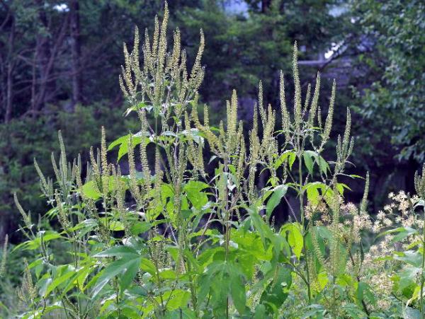 さらに茎や葉にザラザラした毛が生え、手に触れるとかゆみを伴う症状を引き起こし、また人によっては花粉症を発生させる原因植物となっている。