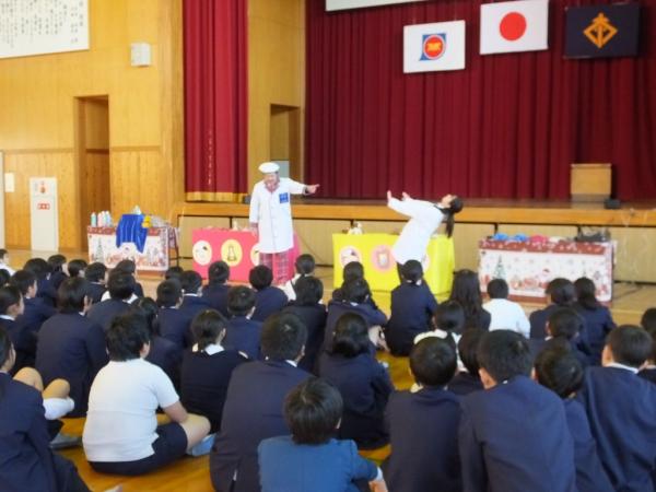 この日は、同小5・6年111名が参加し、チャーリー西村氏が、日頃便利に思いながら何気に使っている日常にある科学について、いろいろな例を挙げ説明。