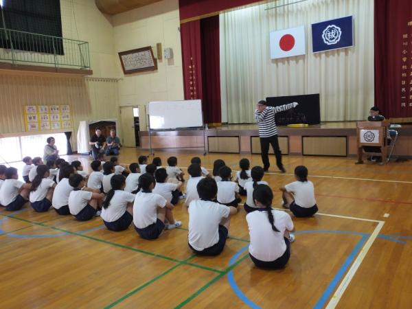 はせがわ天晴さんは「(子どもたちの)反応はすごく良くて、先生がいっしょになってやってくれて楽しくできました。体を動かして表現する、相手に伝えるためにはどうしたらいいか、いろいろ考えてやれば、楽しいと思います」など話していた。
