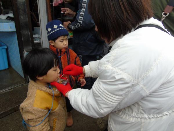 長男の仁さんが楠隼中学に通っているという宮崎から参加の日高啓介さん5人家族は、「イベントの内容がすごく良くて、普段経験できないすごく貴重な体験ができました。スーパーでは買えないシュモクザメが食べられ美味しく、歴史も学べ温かい人たちに触れて内之浦が大好きになりました」と話していた。