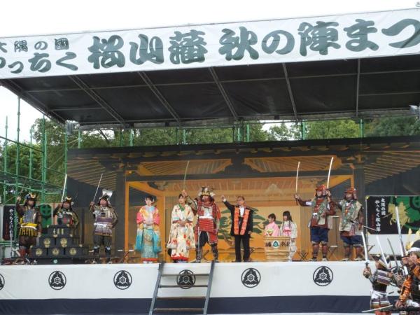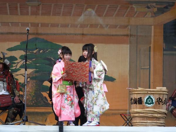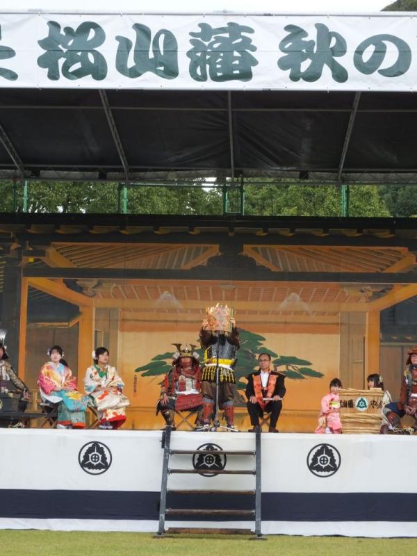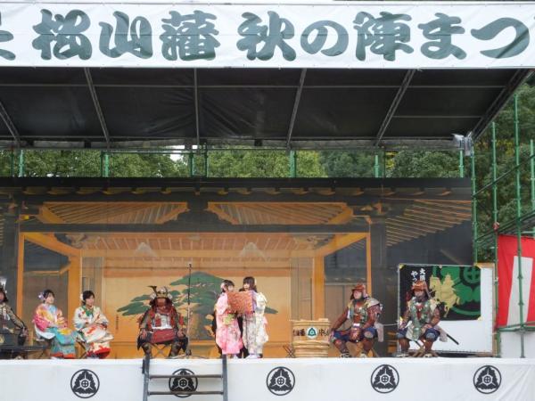 舞台で領主や城主らの儀式が厳かにとり行われた。