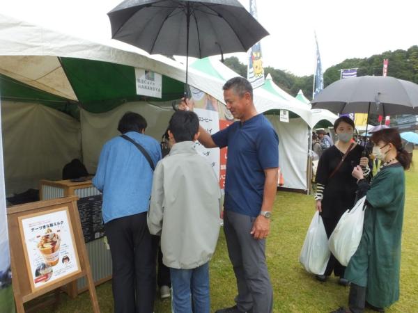 会場いっぱいの出店では、地域の特産物などに行列ができていた。