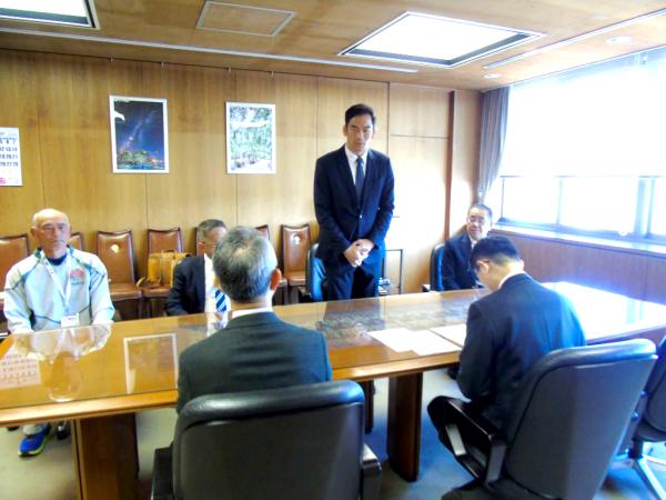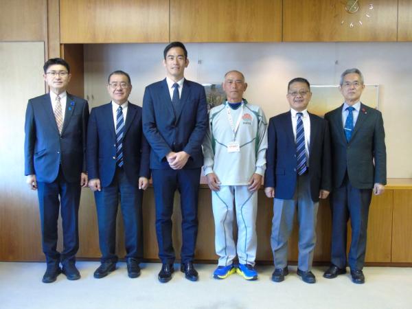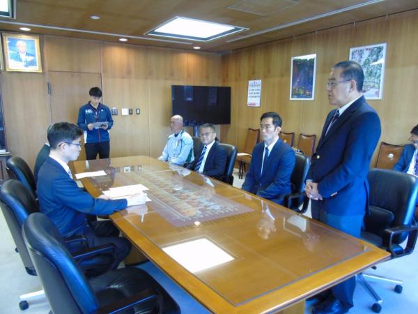 この日、中水流氏や中会長、同協会の内村純一副会長、加藤善文理事が表敬し、郷原市長と中野健作教育長からエールが送られた。