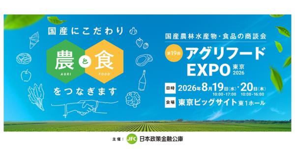 アグリフードEXPOは、2026年8月19日(水) ~ 20日(木)10:00~17:00、東京ビッグサイト東1ホール(東京都江東区有明3ー11ー1 )で開催される。