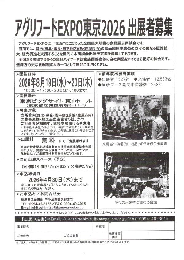 皆様方の更なる販路拡大の一つとして是非ご出展ください。…と呼び掛けている。