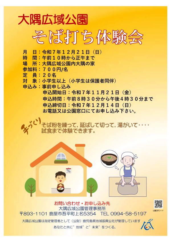 12/14 城山ホリディ 心地よい雰囲気の会場に魅力的出店者 城山ホリディは、令和7年12月14日(日)10:00-17:00、鹿屋市北田町城山公園で開催される。 城山公園から「心地よいひととき」を。 そんな想いから始まるマルシェイベントです。心地よい雰囲気の会場に魅力的な出店者が集います。 豊かな自然の中でくつろぎながら、おいしい食事や貴重な体験活動を楽し… …続きを読む ▶