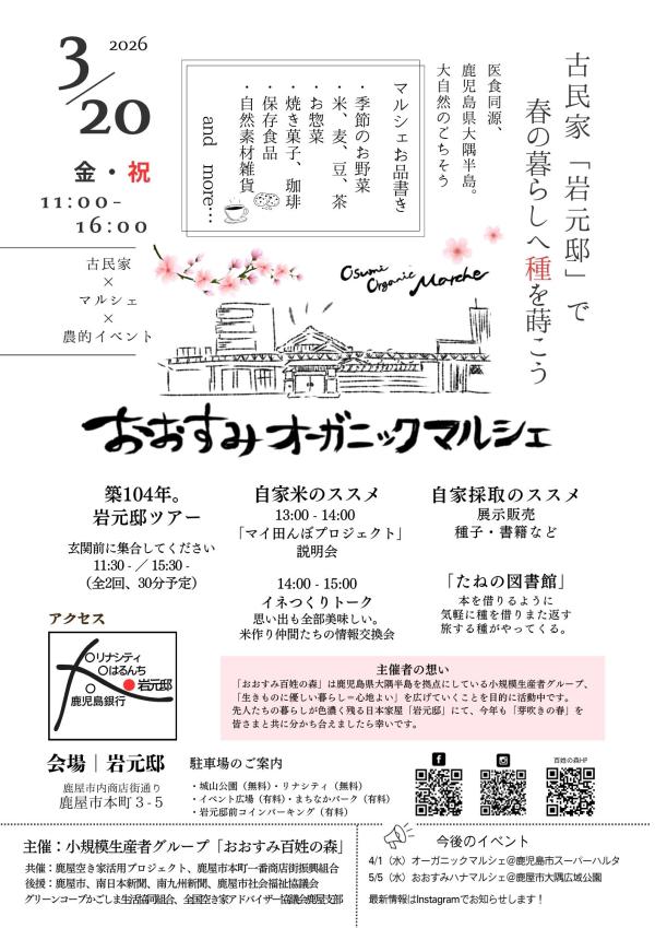 3/16迄 鹿屋市収蔵作品展開催中~郷土ゆかり美術作品など 鹿屋市収蔵作品展は、令和8年3月6日(金)~令和8年3月16日(月)10:00~18:00、リナシティかのや2Fギャラリーで開催中。3月12日(木)は休館。 入場無料 これまでに鹿屋市へ寄贈された作品や鹿屋市美術展で入賞した作品など、鹿屋市が収蔵している絵画をはじめ、工芸、彫刻、書、写真等を展示い… …続きを読む ▶