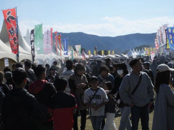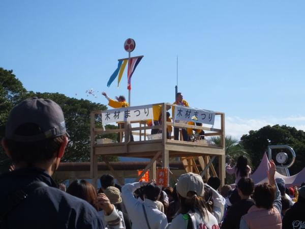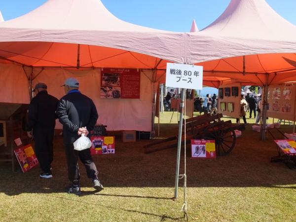 戦後80年企画ブース、抽選ブース、鹿児島黒牛パック販売、軽トラ市などの展示即売会、豚の丸焼き、カンパチ、ジビエ肉などのふるまい、スマート農業紹介、丸太切り体験など木材まつりなど多彩なイベントとなった。