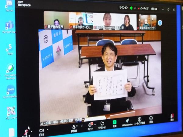 株式会社Another worksの経営企画室自治体事業の杉浦貴紀氏が、オンラインで進行、地域活力推進課の須山真介主査からプロジェクトの概要説明があり、吾平住民サービス課の髙田大が、次の要旨で取組内容の報告があった。