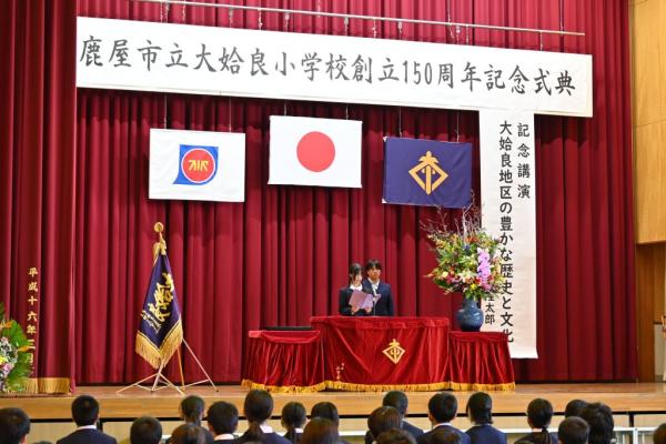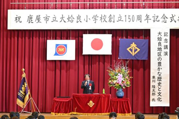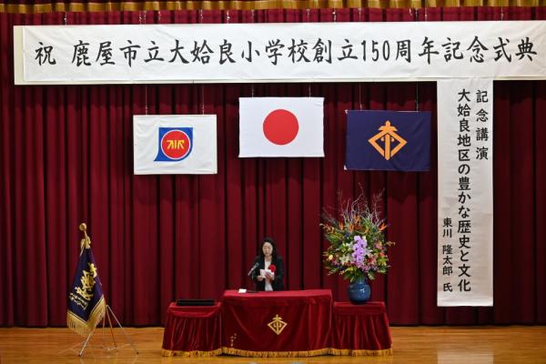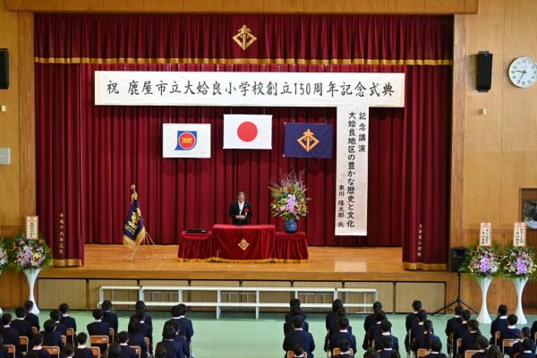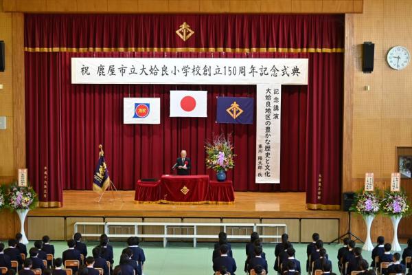 鹿屋市立大姶良小学校(森幸恵校長)の創立150周年記念式典が令和7年11月8日、同校体育館で開催され、東川龍太郎氏の記念講演もあった。