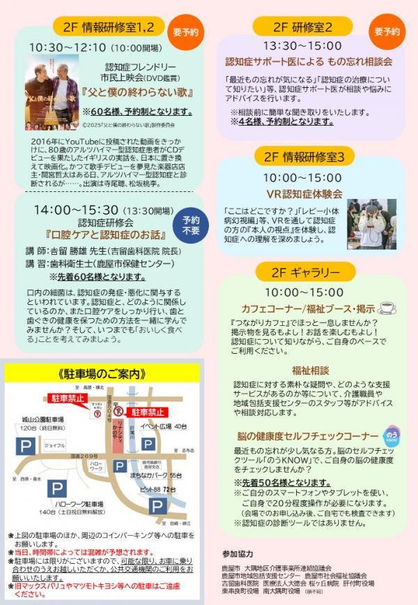 認知症について「見る」「知る」「学ぶ」「相談する」「体験する」ことができるイベントを開催。内容盛りだくさん!お気軽にお越しください!…と呼び掛けている。