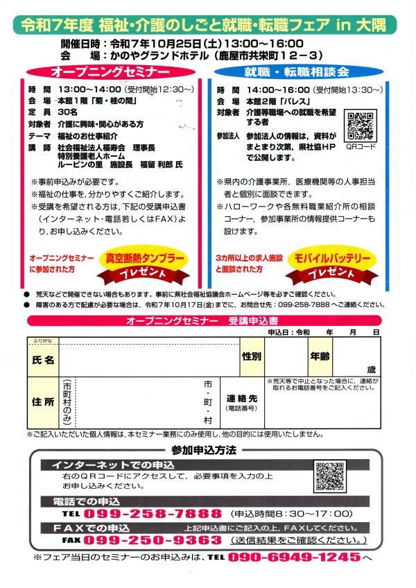 10/25 福祉・介護のしごと就職・転職フェアin大隅