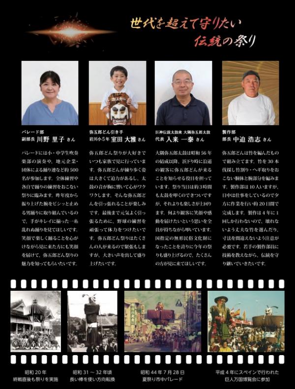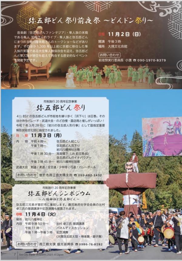 また、2日(日)午後3時には弥五郎どん祭り前夜祭~どんドン祭りが大隅文化会館で、4日(火)には、弥五郎どんシンポジウムが岩川八幡神社である。