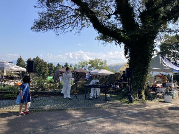 陶器市では12:30からスペシャルライブがあり錦江町で活動する伊藤 愛(いとう まなみ)さんのフルート、鹿屋市で活動する小脇 教子(こわき のりこ)さんのピアノの演奏が華を添えた。