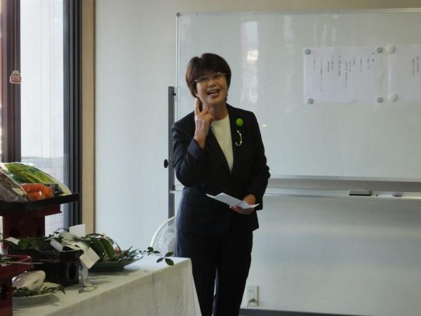 有園あつこ選対本部長が「落司さんには、私の人生で一番つらい時に寄り添ってくれた人。こういう人が市長になったらと思いますが、如何せん知名度がなく、どこでイベントがある、話を聞いてくれるなど、いろんなところに引っ張り出してください」など支援のお願いを訴えた。