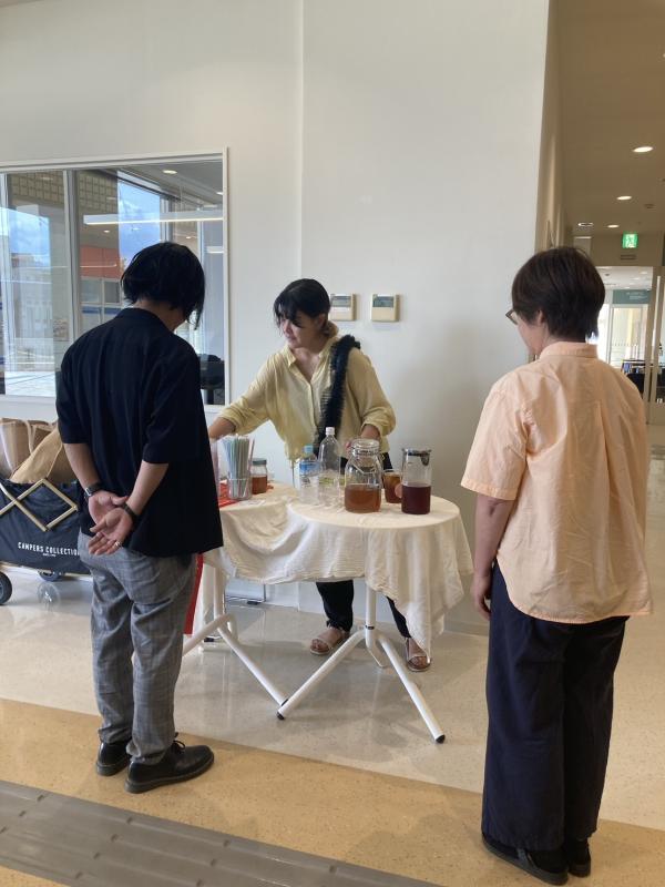 写真=辺塚だいだいを使った飲み物を振るまう「aya」の倉岡さん