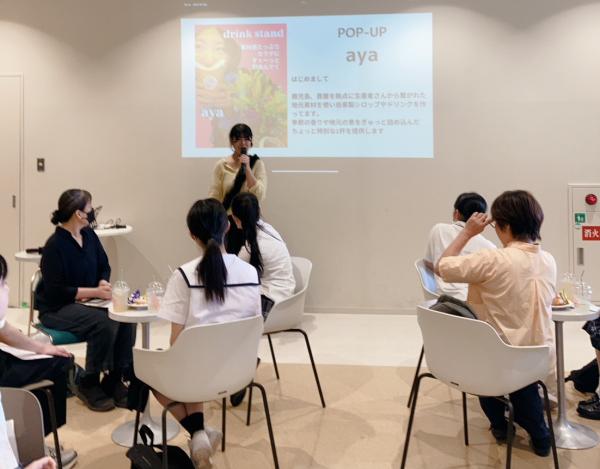 写真=地元の素材を使ってドリンクを販売する経緯を話す倉岡さん