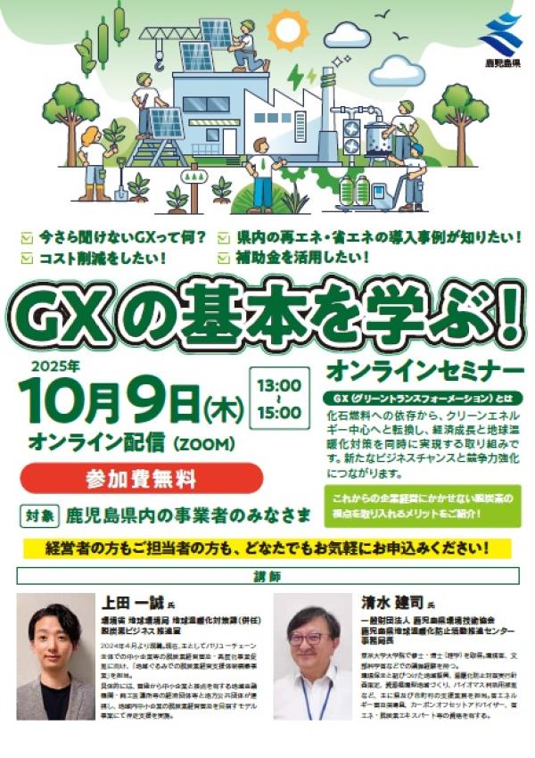 GXに少しでも興味のある鹿児島県内の事業者のみなさま,経営者の方でもご担当者の方も,どなたでもお気軽にご参加ください!…と呼び掛けている。