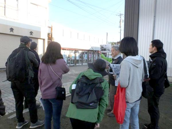 15日は、歴史探学会おおさきの大崎町郷土史の高瀬幸雄研究員、大崎町教育委員会大崎町史編纂調査部会の安田辰夫調査員をガイドに、「三文字まち歩きガイド」があり、商店街で100年以上続いている商店の前などで、大正から昭和の古い町並みの写真を見ながら、まちの歴史を学んだ。