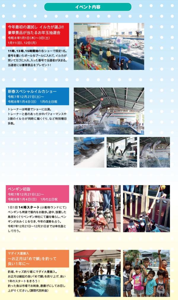 志布志湾大黒イルカランド「年末年始イベント」は、令和7年12月27日から1月4日、1月中の土日祝日で開催される。