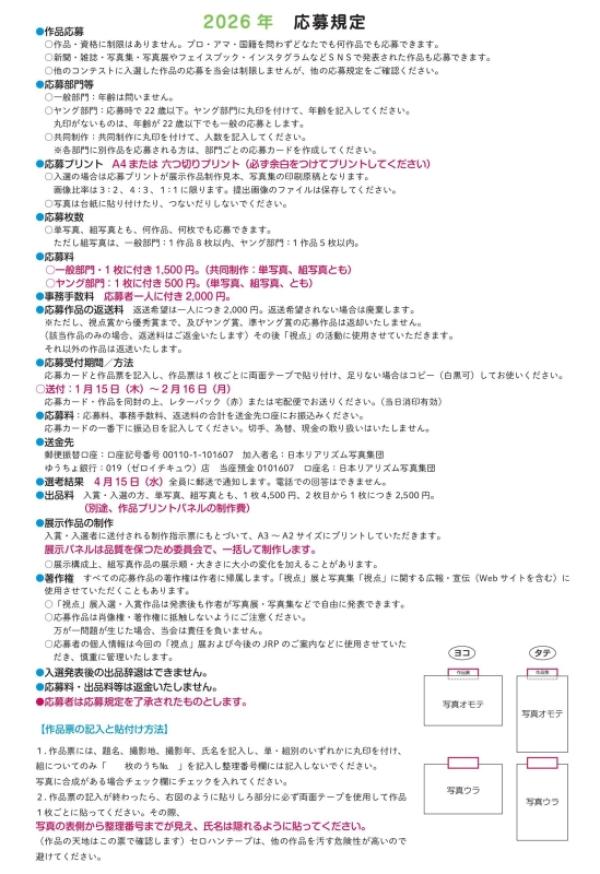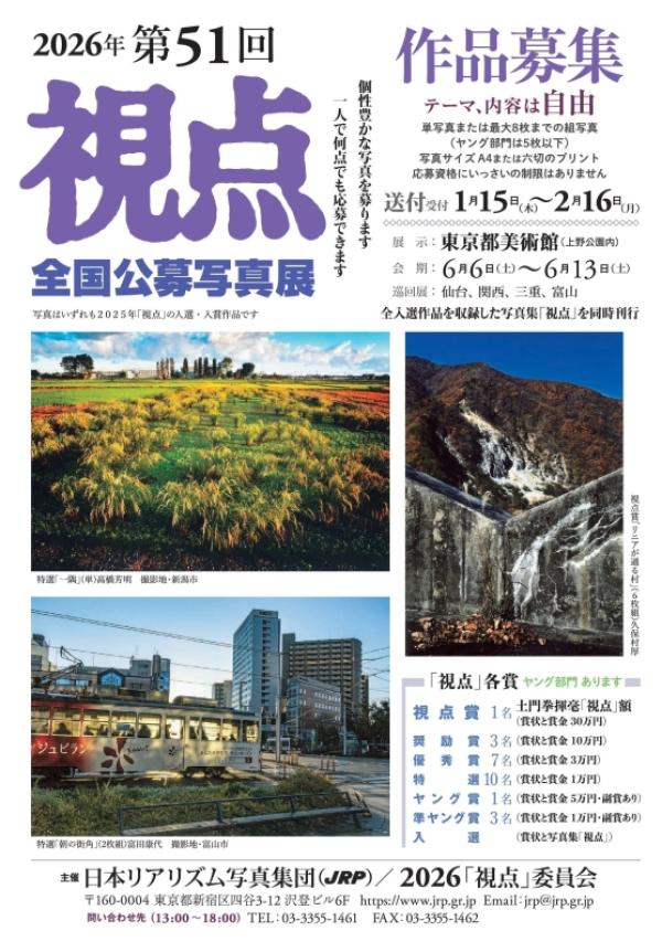 2026年第51回となる日本リアリズム写真集団の全国公募写真展「視点」の募集が、2026年1月15日から始まる。