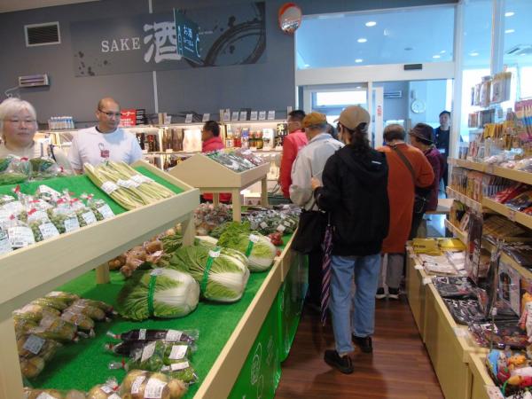 肉、魚、野菜、果物など、地元の豊かな恵みが並ぶ物産館は、買い物しやすいレイアウトになっている。
