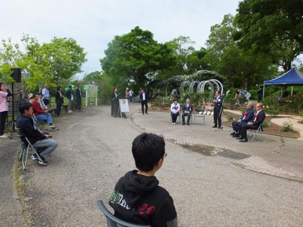 イギリスのガーデンとはデザインが違うが、そこに負けないくらいのばら園となっている。ここで生まれ育った子どもたちが、この鹿屋にこんな素晴らしいばら園があるということをもっと知って、地域の人たちが自慢できるばら園に」など話していた。